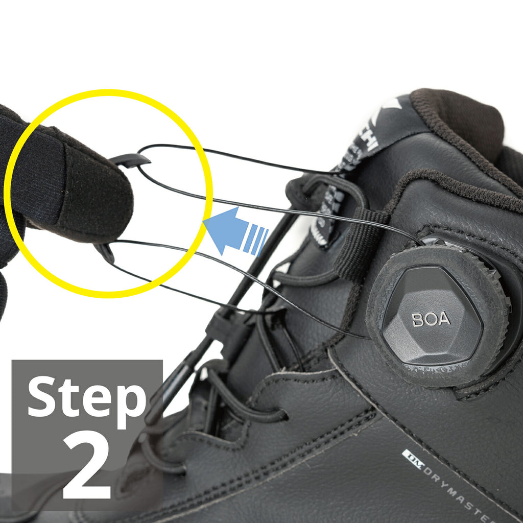 着脱のしやすさと優れたフィット感を実現するBOAフィットシステムを採用。くるぶしまで覆うハイカットタイプで、転倒時でもシューズが脱げにくい仕様に。シューズ内外に配置されたプロテクターが足への衝撃を軽減します。