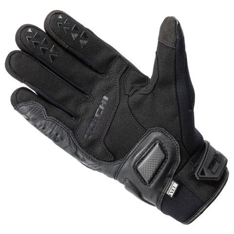 防水仕様で雨天時の着用も可能。 掌のプロテクターにカーボン素材を、甲にはレーシンググローブ譲りのカーボンナックルプロテクターを採用。