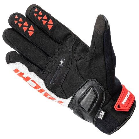 防水仕様で雨天時の着用も可能。 掌のプロテクターにカーボン素材を、甲にはレーシンググローブ譲りのカーボンナックルプロテクターを採用。