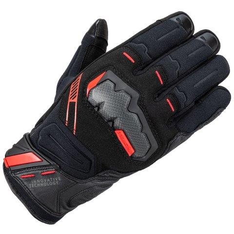 防水仕様で雨天時の着用も可能。 掌のプロテクターにカーボン素材を、甲にはレーシンググローブ譲りのカーボンナックルプロテクターを採用。