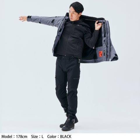 防風とストレッチを両立した生地に、毛長フリースの裏地を合わせて保温性を向上、電熱ユニットの効果を最大限に発揮します。