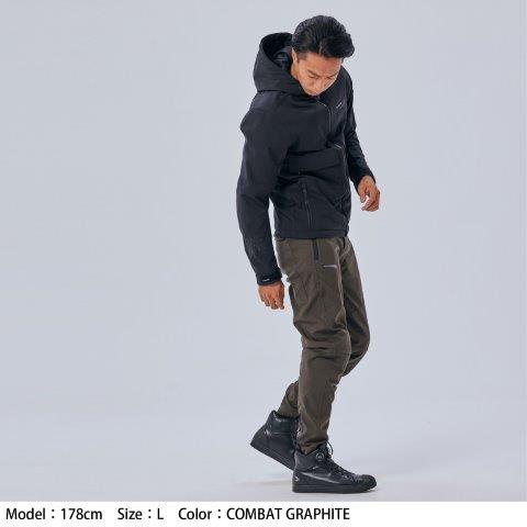 防風性・ストレッチ性に優れたソフトシェル生地を表地に、肌触りの良いフリース生地を裏地として採用。保温性を確保しながらも、やわらかい着心地でライディングフォームに追従する、直履きタイプのライディングパンツ。