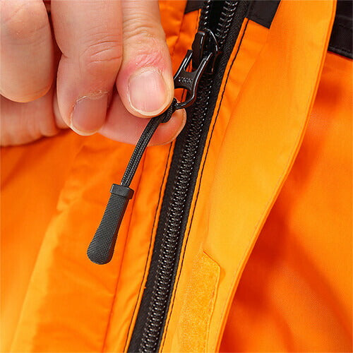 防水加工や防水仕様を施していますが、襟元、袖口、ポケット口、裾等からの雨、水の浸入は防げません。付随のベルクロテープ、ファスナーにてきちんと閉めてご使用下さい。