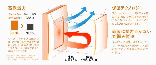 ThermOne Lightweight Vネック9分袖 [メンズ] 《暖撃》驚異の保温率を実現した比較にならない暖か肌着丸編み製法で肌触りが良く、優れた保温力と吸水速乾性で冬場の汗を伴うスポーツや屋外作業に適した汗冷えしにくい暖か肌着。【重要】実際の商品と商品画像の色味が違う場合がございます。その場合は実際の商品を優先させていただきます。