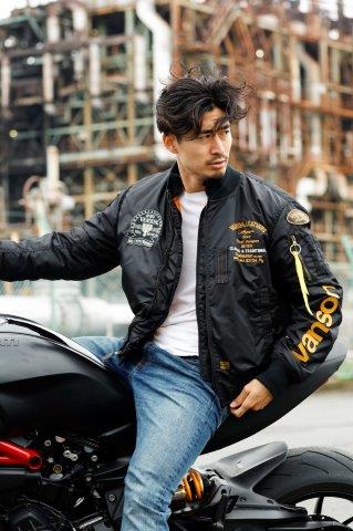 ・両腕vanson本革切り文字。背面中央本革ワッペン仕様